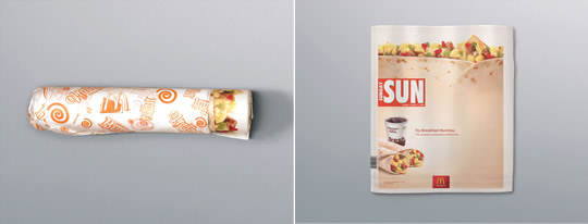 Este anuncio corresponde a la revista SUN, el anuncio llena toda la portada, con esto es imposible no poder fijarse en él. El mensaje está escrito en un tamaño de letra muy pequeña para el espacio que tiene, además destacan los toques rojos de los burritos, no siendo así solo el logotipo de la revista el que se lleve toda la atención.